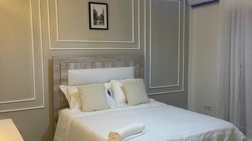 Ce bel appartement meublé est situé au quartier Bonapriso dans un cadre calme et sécurisé à proximité de la route et des commodités. Il comprend un séjour lumineux, deux chambres confortables ayant chacune une salle d’eau privative, une cuisine équipée et fonctionnelle, un WC pour visiteurs . L’électricité est garantie grâce au groupe électrogène et vous avez à votre disposition service de gardiennage 24H/24 . Cet appartement est idéal pour un cadre de vie agréable et serein .